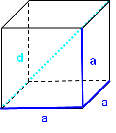 \[\text{Oberfläche:}\qquad O=6a^2\] \[\text{Volumen:}\qquad V=a^3\] \[\text{Körperdiagonale:}\qquad=\sqrt{3}a\] Quader