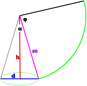 - Zentriwinkel des abgewickelten Mantels \(\varphi\)